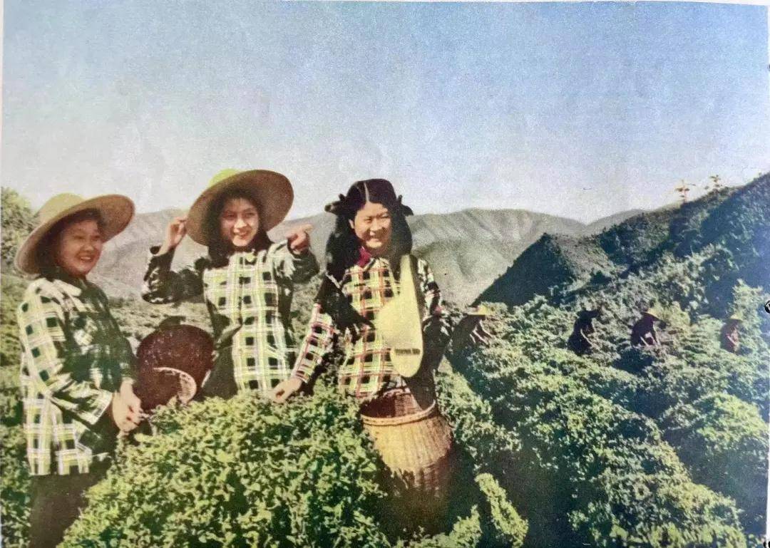 图/周总理(中)伏罗希洛夫(右)观看梅家坞妇女炒茶,卢正浩陪同